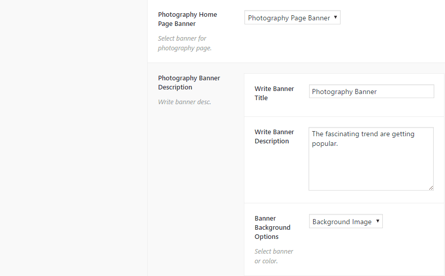 - Home Page Template Settings: Photography Home Page Template Settings.