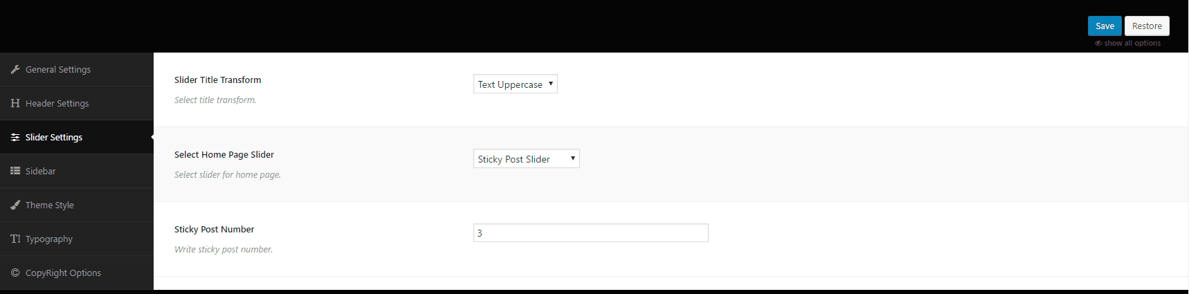 Slider Settings: Main Home Page Sticky Post Slider/Main Home Page Image Slider.