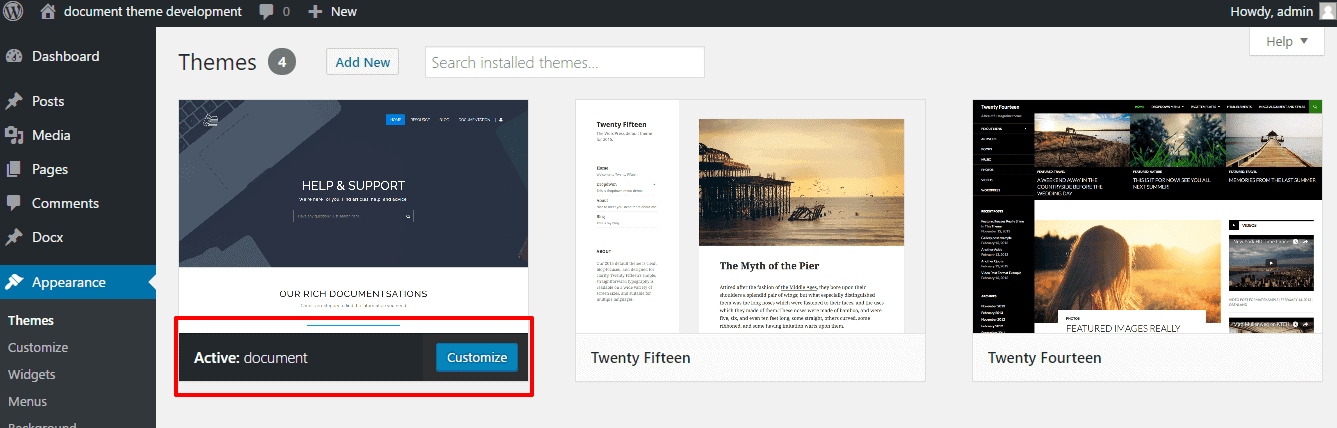 - After installing a theme, roll over the Theme thumbnail and click the Activate button.