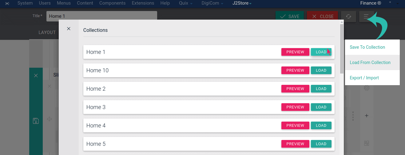 You can create a new page very easily using Quix. Go to Quix > New Page > Load From Collection. You will see list of pages there. Click Homepage you want and Load button and Save.
