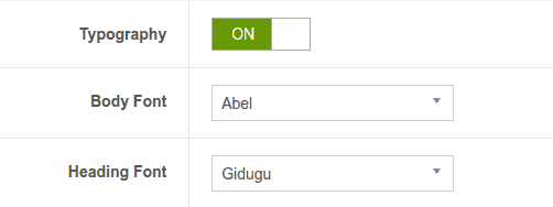Typography: Eventia has a default font But if you want to change font then, Go to Template settings > Template Options > Enable typography and select font.