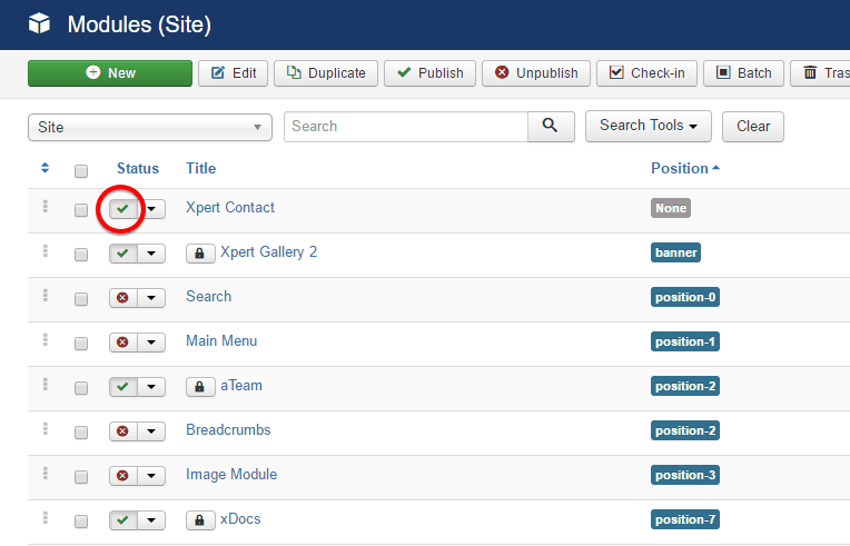 Extensions> Modules - Find the Xpert Gallery and click the pointed area like screenshot below in order to enable it.