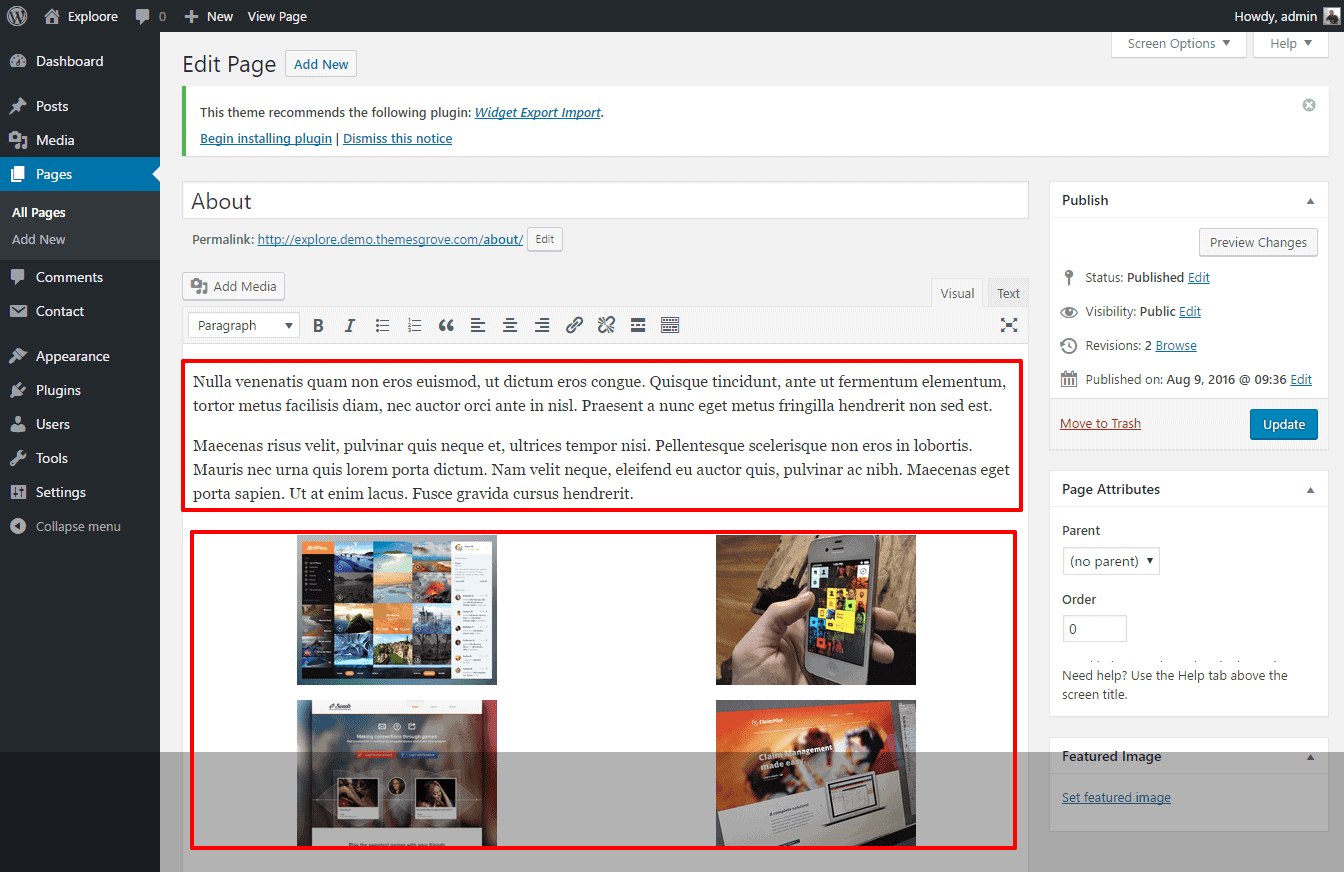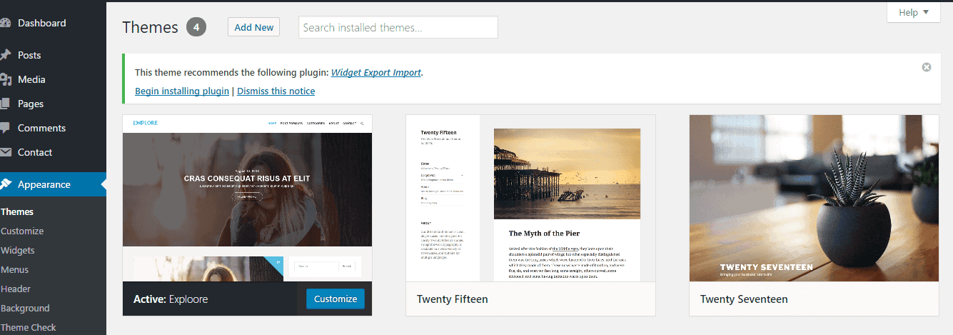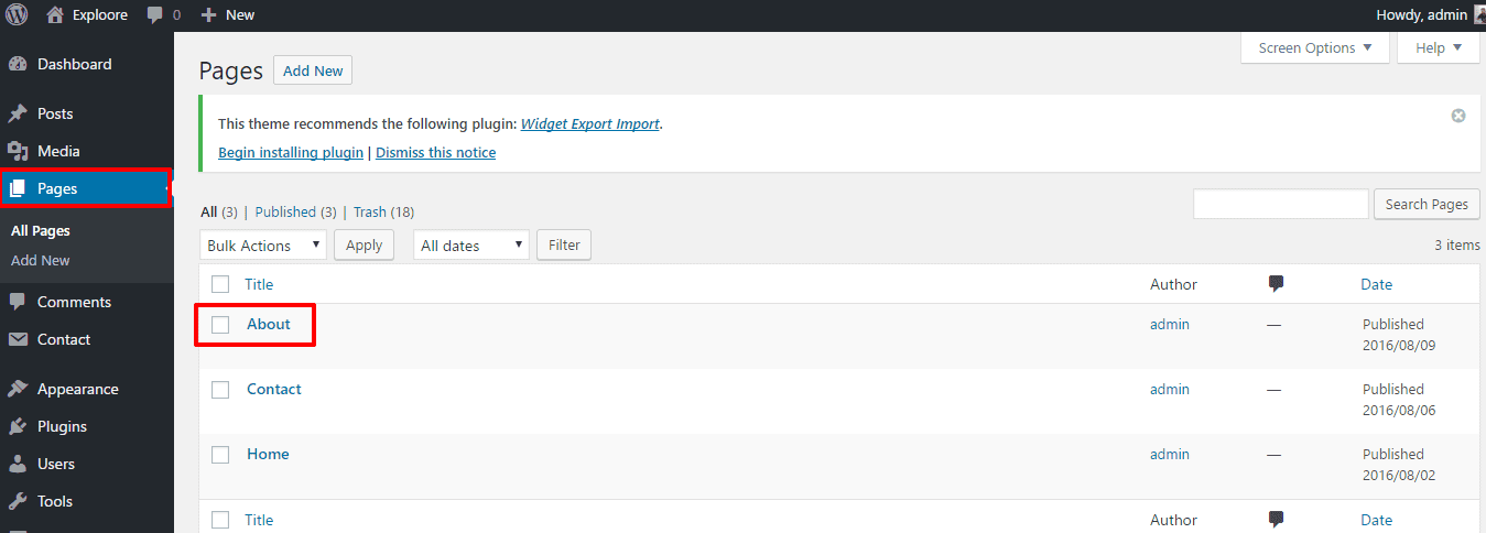 exploore-demo-content.xmlfile from your demo folder and click "Upload file and import"