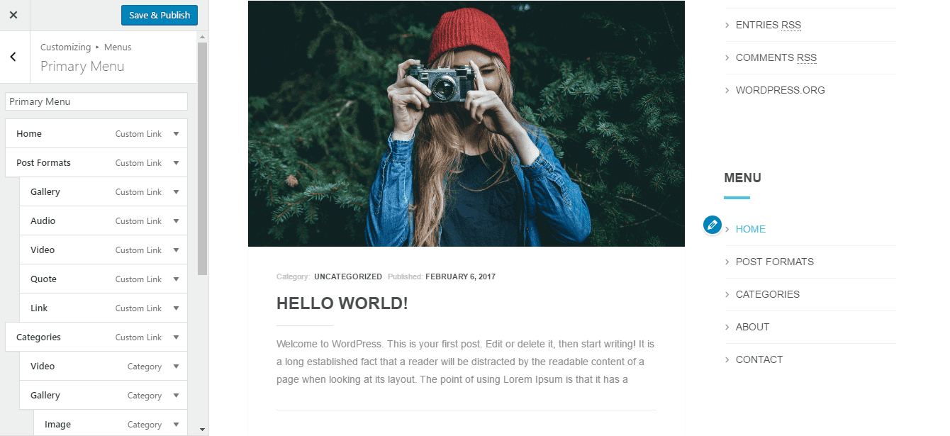 - Can drag & drop menu from here, if you don't want to go the main menu option.