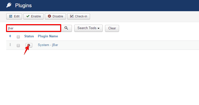 Extensions> Plugins - Find the System - jBar and click on the pointed area like the screenshot to enable it. You can use the search box, just write jbar on the box and hit enter and it'll appear.