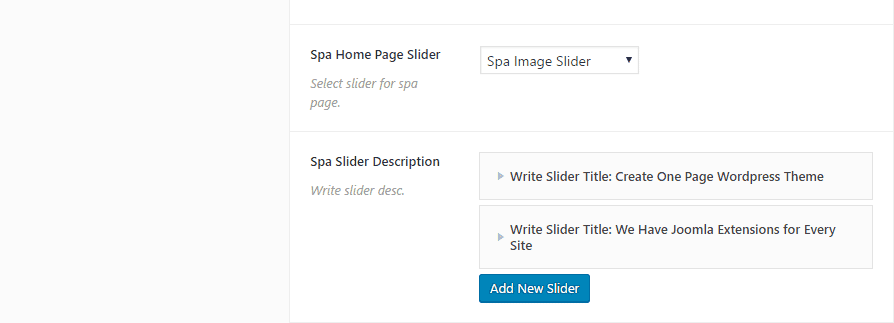 Slider Settings: Spa Home Page Sticky Post Slider/ Spa Home Page Image Slider.