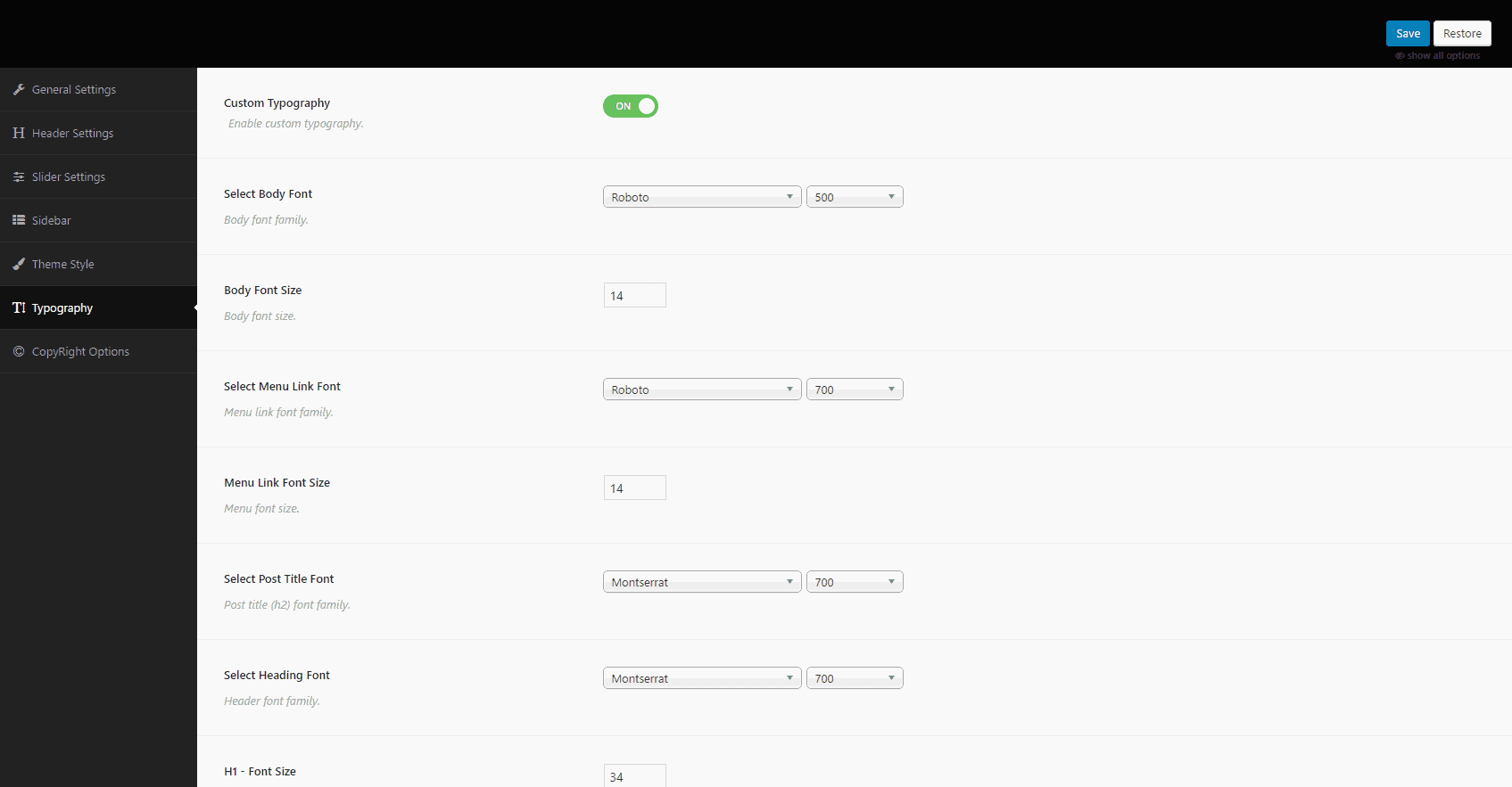 Typography Settings: Custom Typography for your theme.