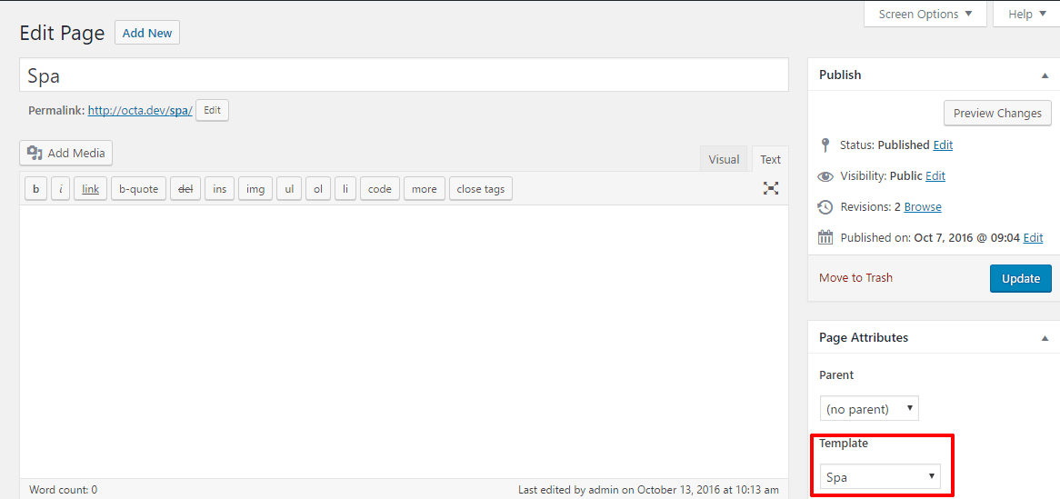- Home Page Template Settings: Spa Home Page Template Settings.