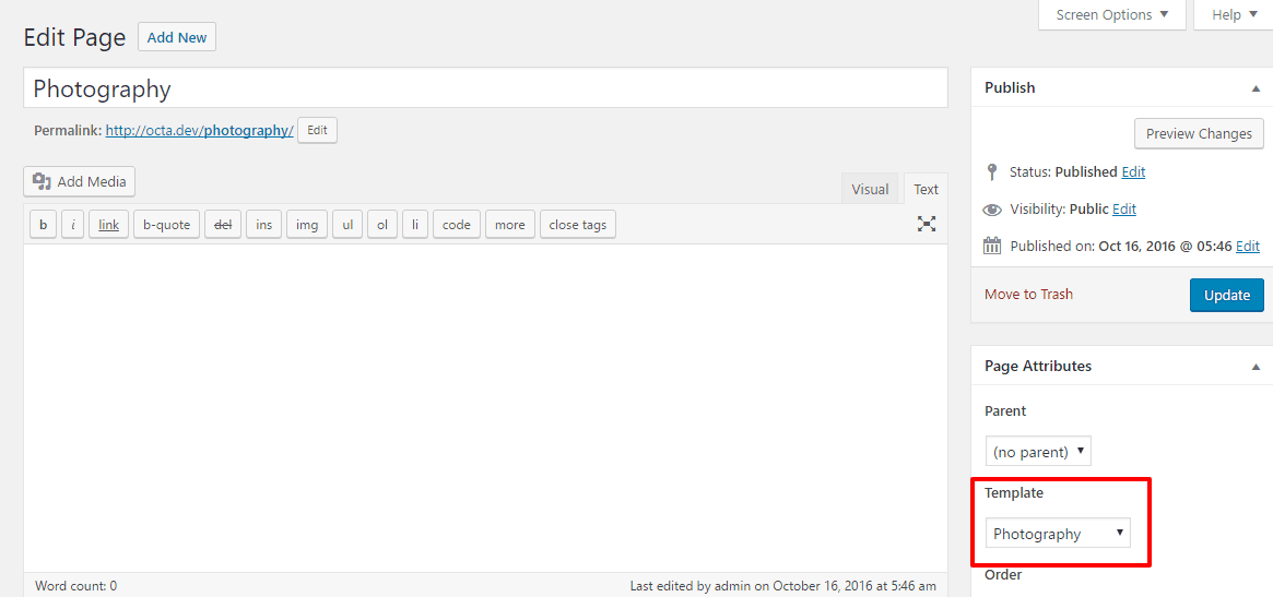 - Home Page Template Settings: Photography Home Page Template Settings.