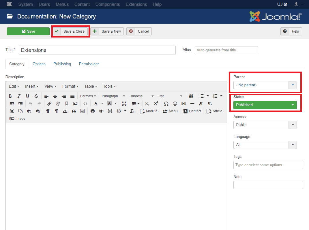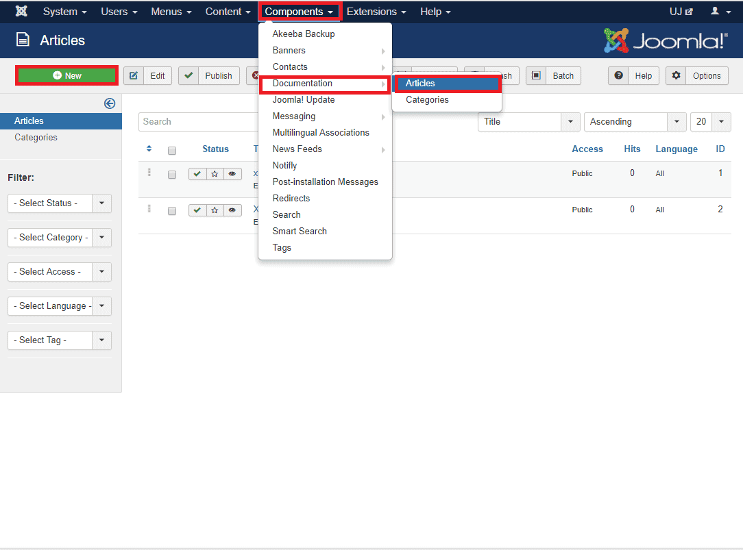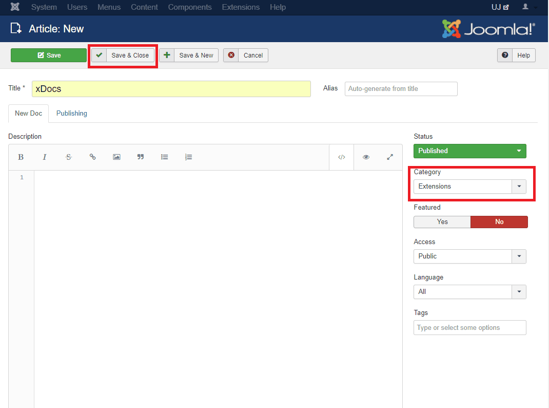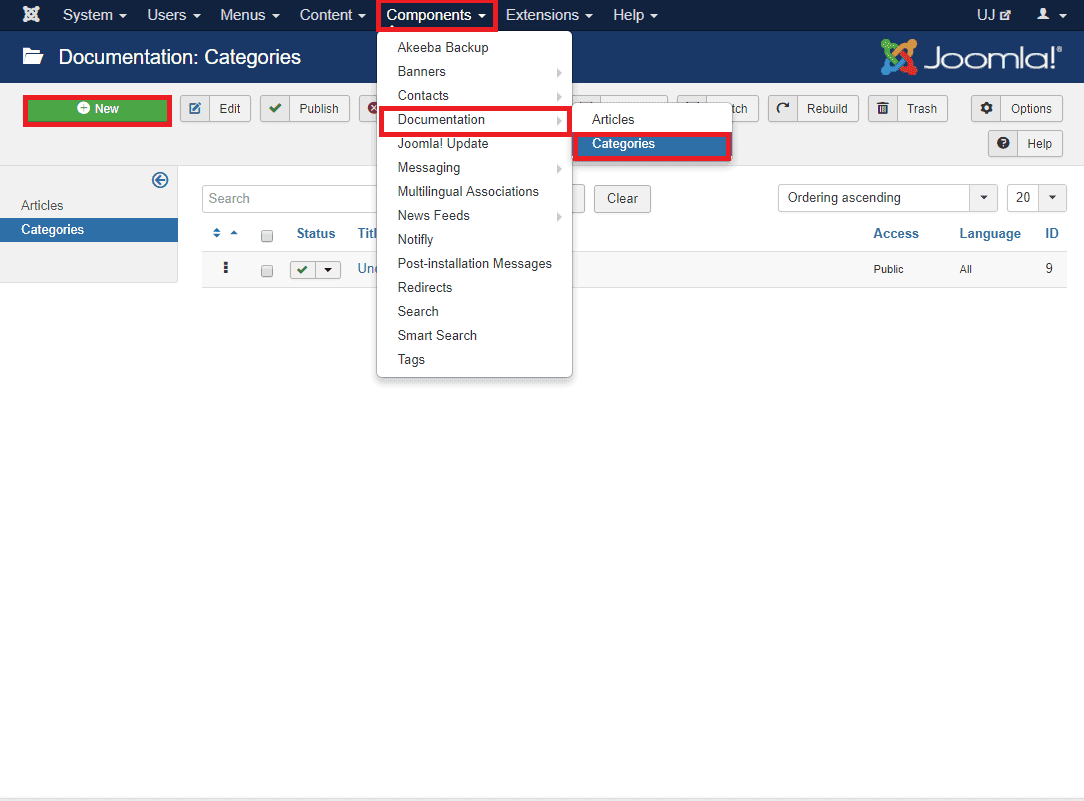 - Click on the xDocs - Categories module then a configuration page will appear.