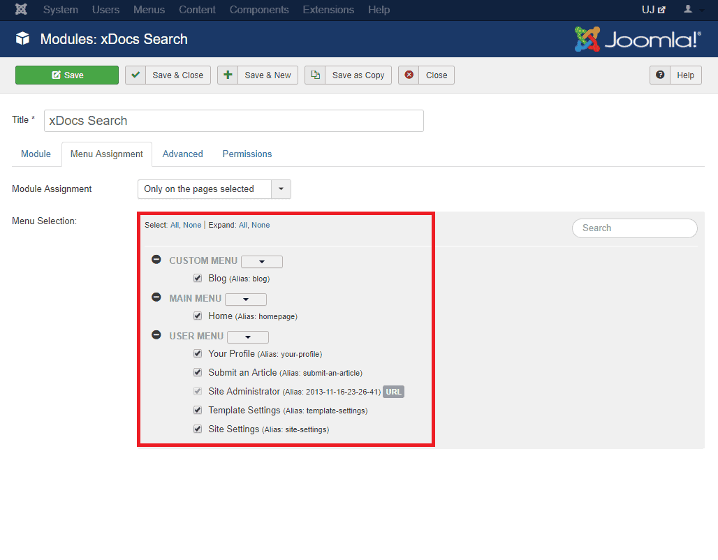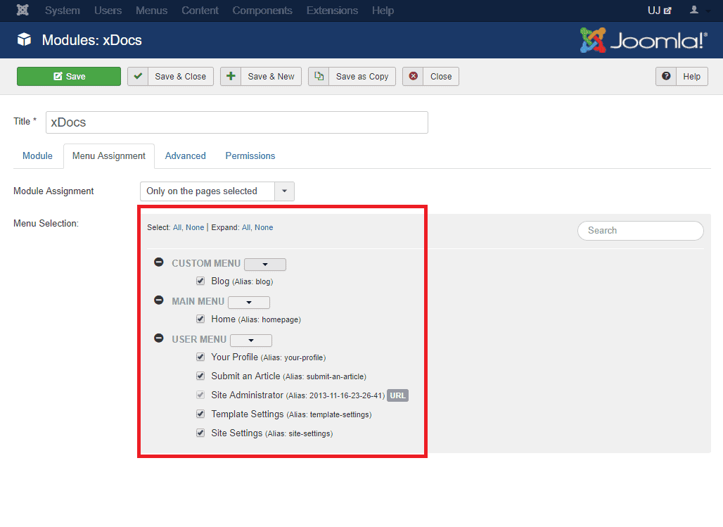 - Now, under the Menu Assignment tab, define that in which page you want to show the module and in which not. You can hide the module from all pages as well.
