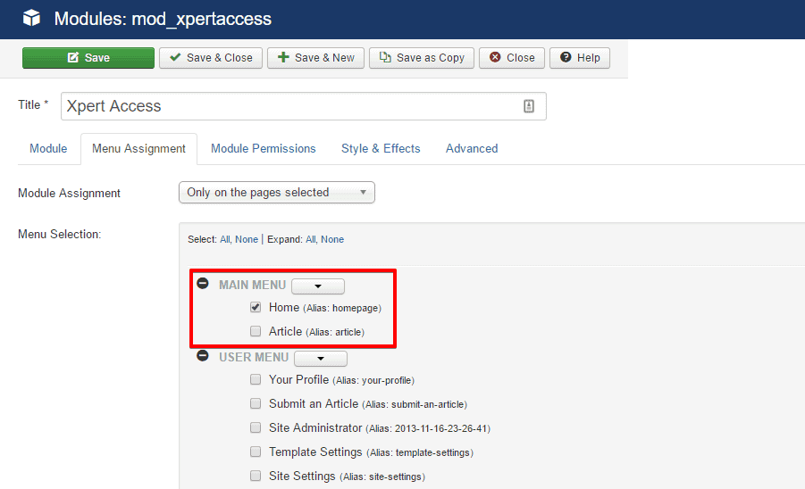 - Now, under the Menu Assignment tab, define that in which page you want to show the module and in which not. You can hide the module from all pages as well.